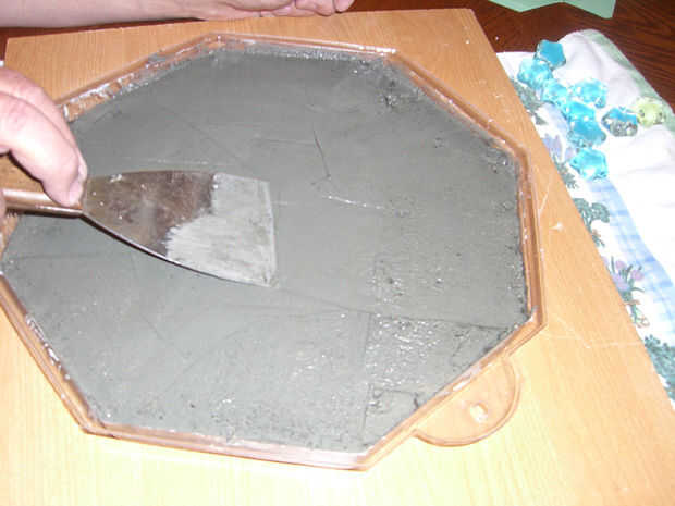 En lugar de ser capaces de suavizar el medio una vez terminado el proyecto lo tiene que alisar primero ya que no serás capaz de rebotar la Junta o liso una vez la inscripción. Usé una amplia espátula del spackle primero y luego había cubierta con papel encerado y había terminado el trabajo con un fondant suave con un movimiento de tipo tabla de planchar.