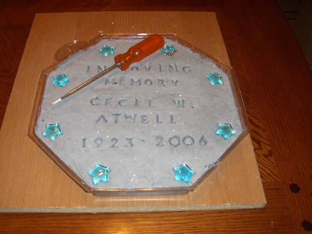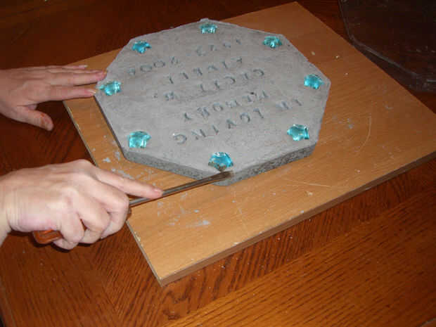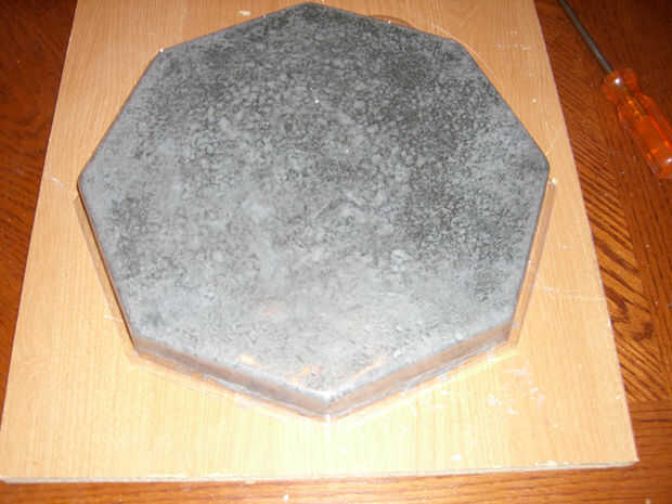 Dale la vuelta sobre el tablero con una mano en la parte superior. Levante con cuidado el molde de la piedra.