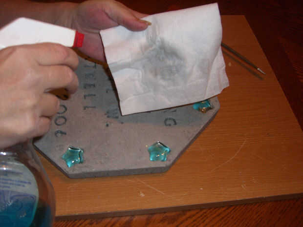 Lavar la piedra con agua y jabón y luego pulir las estrellas con Windex.