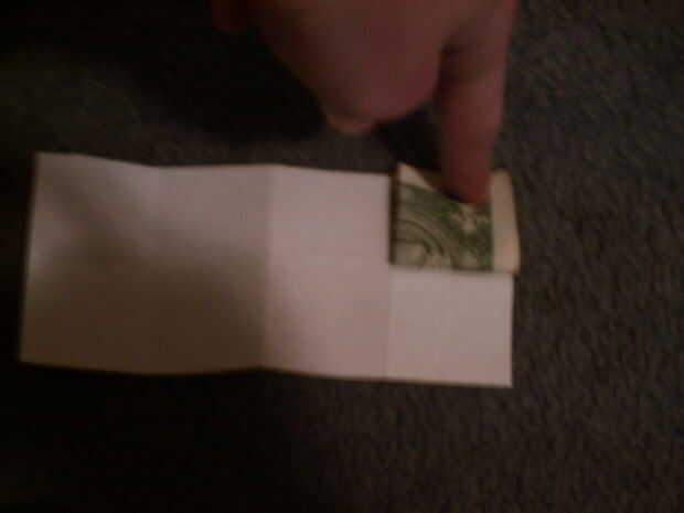 un truco de magia para que se vea como cambiar un pedazo de papel en un billete de un dólar.