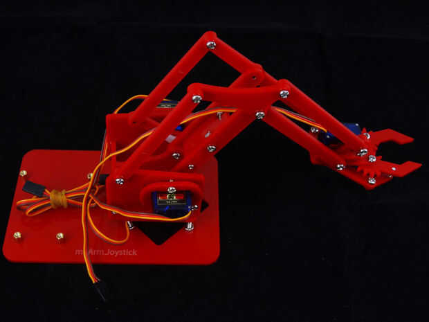 Este proyecto se deriva de bolsillo tamaño de brazo de Phenoptix de Robot.此專案源自於此, 但我加上搖桿和教程, 希望對大家有幫助.software de 30 lecciones (C/S4A/Ardublock) .30餘堂軟體課程在此 (C/S4A/Ardublock) .若要洗搖桿擴展板, 有附Eagle原始檔, 若要自行雷切, 請下載附件PDF, A4尺寸壓克力板即可. de 3mm 選擇 本 也附 BRICOL