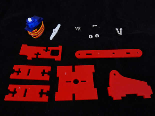 Este proyecto se deriva de bolsillo tamaño de brazo de Phenoptix de Robot.此專案源自於此, 但我加上搖桿和教程, 希望對大家有幫助.software de 30 lecciones (C/S4A/Ardublock) .30餘堂軟體課程在此 (C/S4A/Ardublock) .若要洗搖桿擴展板, 有附Eagle原始檔, 若要自行雷切, 請下載附件PDF, A4尺寸壓克力板即可. de 3mm 選擇 本 也附 BRICOL