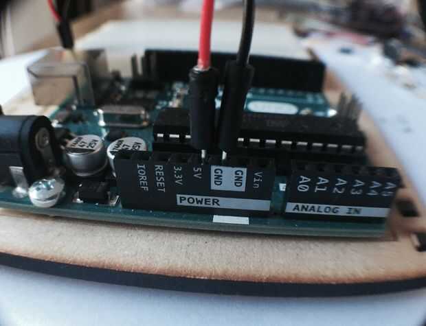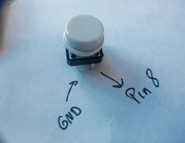 El Certamen lo colocamos el de en protoboard en el centro como se ve en la foto. Conectamos una pata al GND y la otra al pin 8. En este caso vamos a usar resistencia de pullup de las Naciones Unidas (ver este instructable para detalles) para controlar el estado del botón (estado quiere decir si está presionado o no)