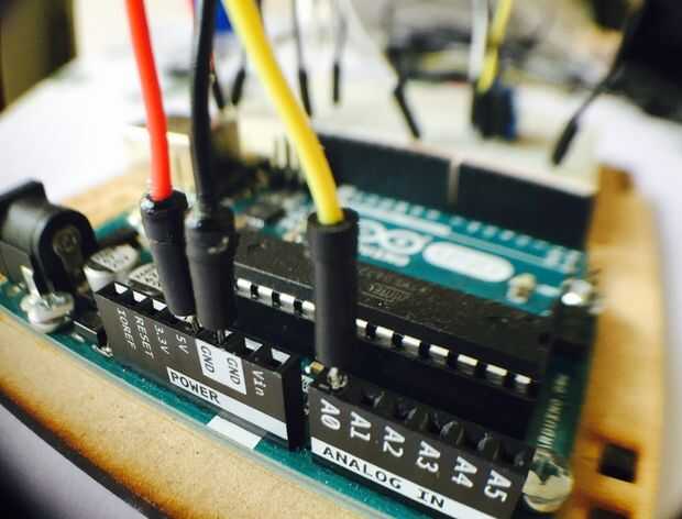 En el Arduino, toda la información entra y venta, lo hace a través de "los pinos". Los pinos en el Arduino son las conexiones están a los lados y en los cuales se pueden conectar los cables como se ve en la foto.