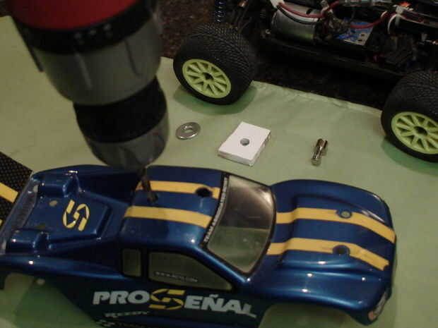 Los materiales que usted necesita, por todos los medios son una Radio controló el coche con carrocería desmontable. En este caso usé un carro de RC 1/18, se necesita un tornillo universal de la cámara, usted puede sacar de un trípode. También necesita arandelas o lámina de pvc para sujetar la cámara en el techo del camión.