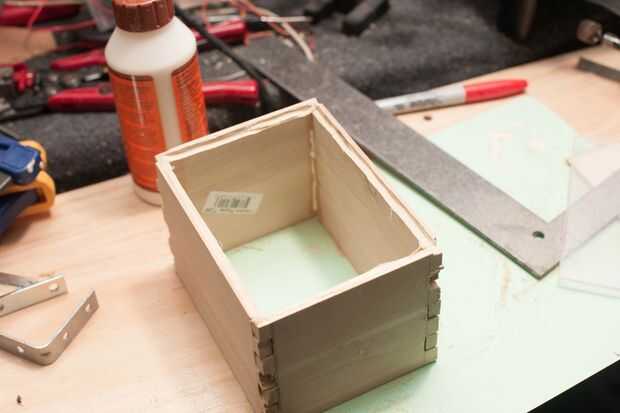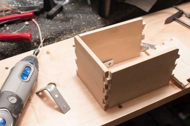 Dado que este proyecto sería preparado y pintado, es una buena oportunidad para practicar mi caja de empalme. El objetivo era hacer 1/2 dedos y utilizando una Dremel (con fresa) y un cincel y archivo para limpiar/cuadre lo. Hice un trabajo bastante pobre, incluso usando el dremel en una posición fija (como una mesa de fresadora) salto/tire la madera un montón y algunos de mi conjunto "dedos" terminó bastante redondeadas o había surcos al azar en ellos. Por no ir demasiado profundo y uso de archivos para limpiar/cuadre lo pude obtener un resultado aceptable. Y como se puede ver en las fotos madera conjunto filtro para ocultar mi terribleness.