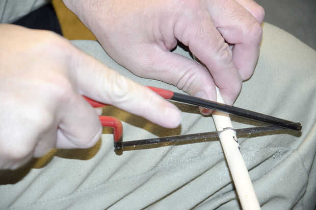1. con su sierra de mano corta su dowls para ser de 32 pulgadas de largo