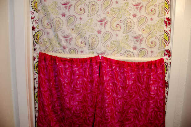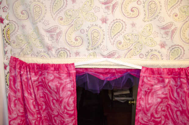 2. utilizando un alfiler o un clip de pelo de rosca la cinta a través de la 1" en las cortinas.