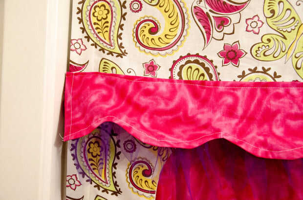 5. cose la cortina sobre la ventana de arriba donde cosen en la cinta de cortina