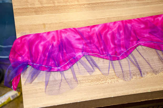 Esto estaría muy bien es así pero cortar algunas tiras de tul lo reunió y cosido en el ostión que se pega hacia fuera