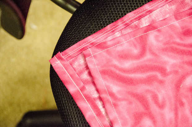 En todos los pedazos excepto el panel de color de 10 "x 32.5 1. doble y presione un dobladillo de 1/4" en todos los lados del extremo largo 2. coser el dobladillo presionado En todas las piezas 3. abata prensa y coser un dobladillo de 1/4" en todos los lados cortos.