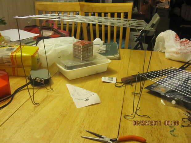 Ahora, las piernas son diferentes longitudes, tan doble pies (en sala) en las partes puntiagudas de la W como necesite para nivelar hacia fuera.