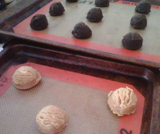 - Utilizar una cuchara para galletas porción de pequeñas bolas de masa y colóquelas en una bandeja revestida con papel