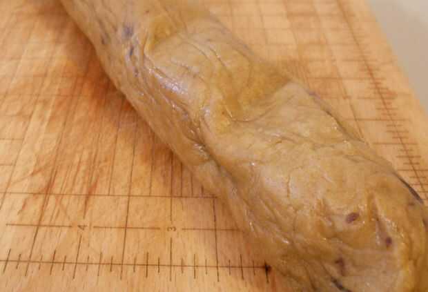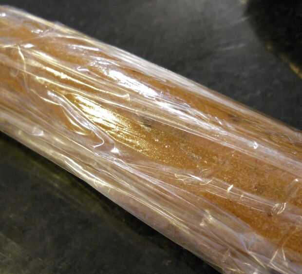 - Coloque cada porción en una hoja de envoltura de plástico y forma una forma de registro aproximadamente 10 pulgadas de largo