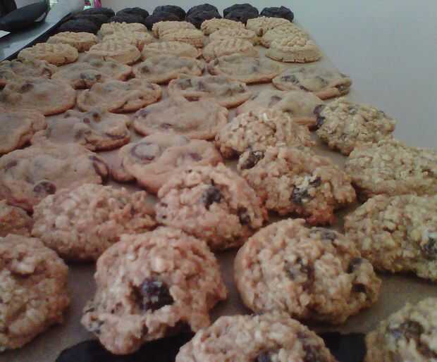 - Masa para galletas (yo usé las siguientes recetas: mejor siempre Chocolate Chip Cookies de Scoochmaroo, la porción de Chocolate Chocolate Chip Cookie de estas increíbles galletas de Chocolate alemán, Chocolate Chip Cookies de mantequilla de maní (sin chips), estas increíbles Galletas de avena con pasas de uva)