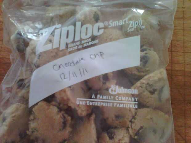 - Etiquetar las bolsas con el tipo de masa y fecha y ponga las bolas heladas de masa para galletas dentro de