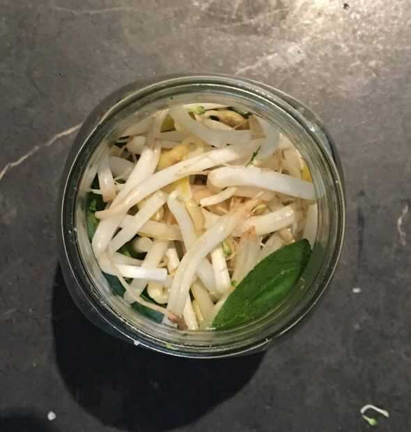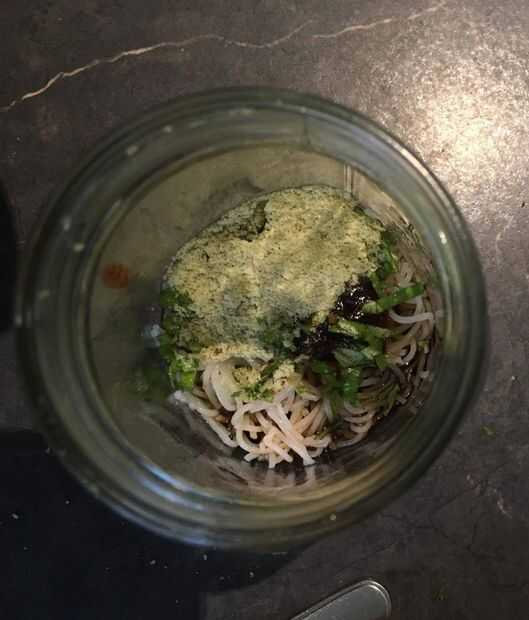 Primer puesto en los fideos cocidos, seguidos por los aromas (salsa de soya, pastas, hierbas etc), luego las verduras y por último los brotes de soja.