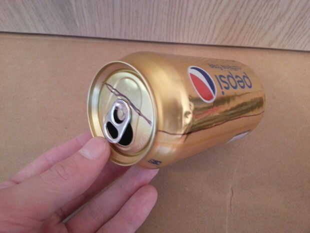 4. En el extremo donde se colocará la plancha (soda puede abajo), hacer cortes y doblar en la plancha de reposo en