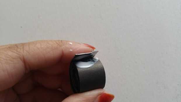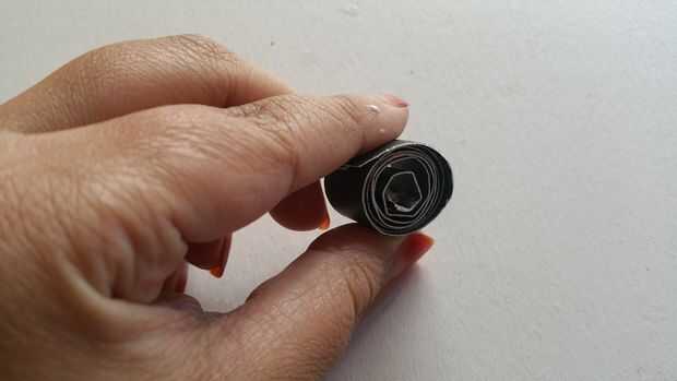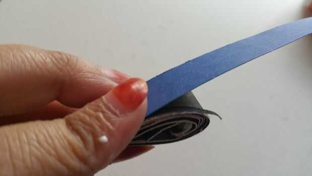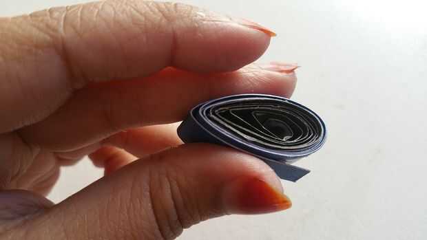Luego poner pegamento en la parte lateral de la misma y empezarlo quilling. Después de realizar una forma redonda luego pellizcar un lado y usando pegamento Fije ambos lados