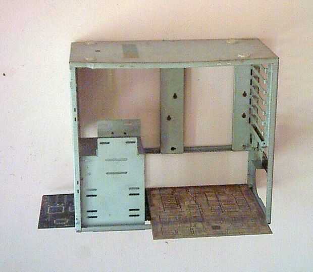 Ahora que el marco es para arriba, necesito estantes. Antiguas placas de circuito con todos los componentes quitados hacen el trabajo muy bien.