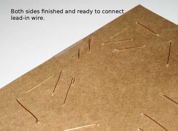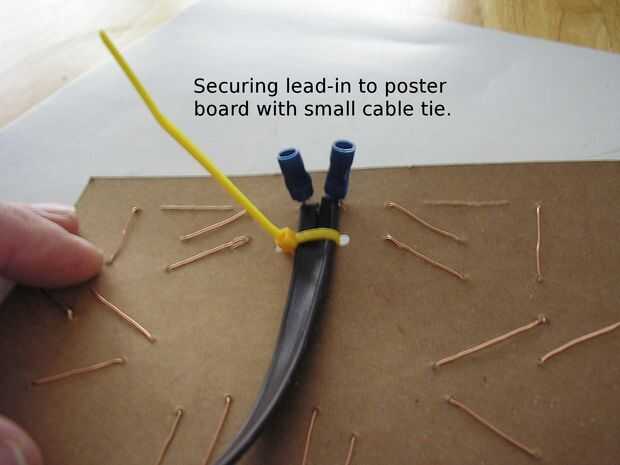 Después de que el lead-in/emparejar transformador está conectado a la antena, es una buena idea para hacer un agujero a través de la cartulina de ambos lados del cableado o transformador de línea y atar el alambre a la cartulina con una pequeña atadura o tristy de una hogaza de pan.
