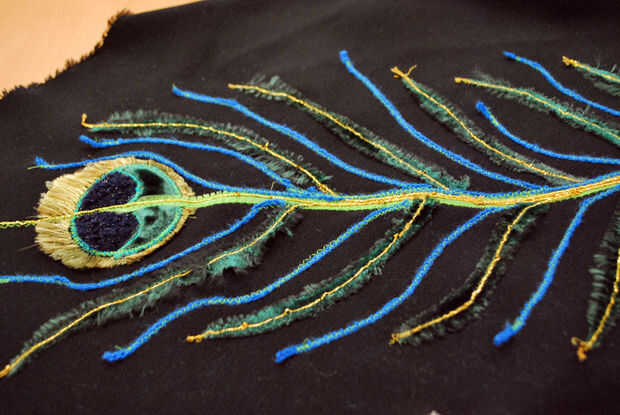 Voila! La pluma realmente está tomando forma. La próxima vez voy a zig-zag en la mayor parte del resto de las hojas.