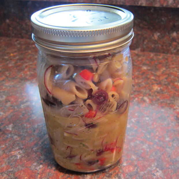 Estaba preparándose hacer una ensalada de pasta hoy y se dio cuenta que era de salsa!! ¡ OH NO! Afortunadamente como muchos refrigeradores mina estaba sobrecargada con frascos casi vacíos de encurtidos y aceitunas así que pensé, hmmm por qué no un mu