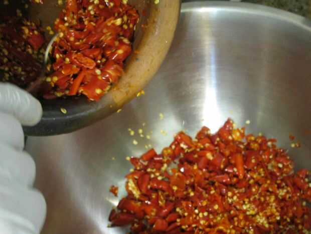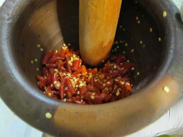 Usted conseguirá algunos jugo de los chiles y hará que el Chile en escabeche picante y más sabroso. Si no tienes mortero, también puede utilizar licuadora aproximadamente mezcla de los chiles, pero asegúrese de que usted limpie la batidora bien después de usarlo.
