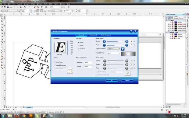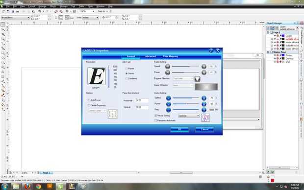 5) seleccione Configuración láser apropiado en el láser de Techshop Detroit.