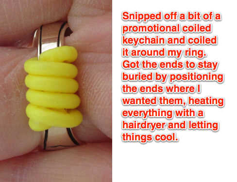 Tengo dedos grandes, gira el anillo de mi colegio. Vi que un producto de 4 estrellas en el Amazonas llamado "RinGuard". Estaba receloso de pagar por algo que estaba seguro funcionaría, así que hice esto a ver si al menos me ha gustado el concepto. Esta solución no funcionará para todos (reduzca mucho mi anillo, no es todo lo que atractivo), pero funciona bien para mí - cómoda, guarda mi anillo de giro y no es un problema cuando mi mano se moja. También me sorprendió que los extremos calor conjunto con secador de pelo hasta ahora han permanecido en posición.