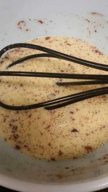 Una vez bien mezclado debe ver algo como la foto 1. Coloque una astilla de la mantequilla en la sartén y esperar a fundir.