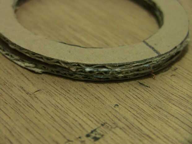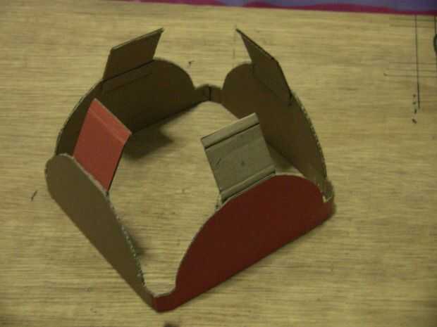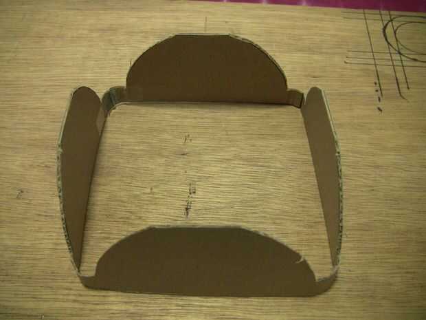 corte "cartón" con seguir la ruta que creó anteriormente. luego forma un cuadrado de cartón. Lenguado cola lo suficiente en los dos brazos de reunión.