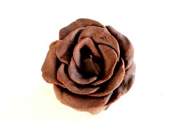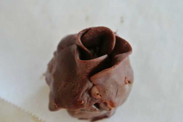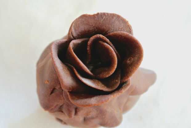Corte unas pequeñas bolas del modelo chocolate y el rodillo hasta formar pétalos. La parte superior de los pétalos debe ser un poco más delgada que la base de los pétalos. Deje que endurezca un poco, a continuación, adjuntar a la rosa.