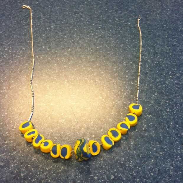 Este proyecto integra una prenda de lana hilada a mano, tejidas a mano con cuentas de sugru para agregar los toques finales.Paso 1: Seleccionar una pieza tejida a mano El mobius que tejió fue anudado en los bordes pero quería juntar ambos bordes con