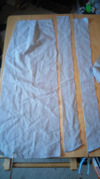 Los otros trozos de tela que corte fueron dos 2" tiras de la tela de una camisa vieja de algodón.