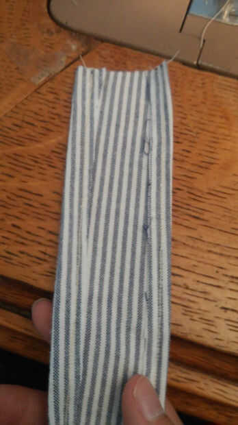 Luego cosí el extremo de las piezas, formando el bucle de la manija.