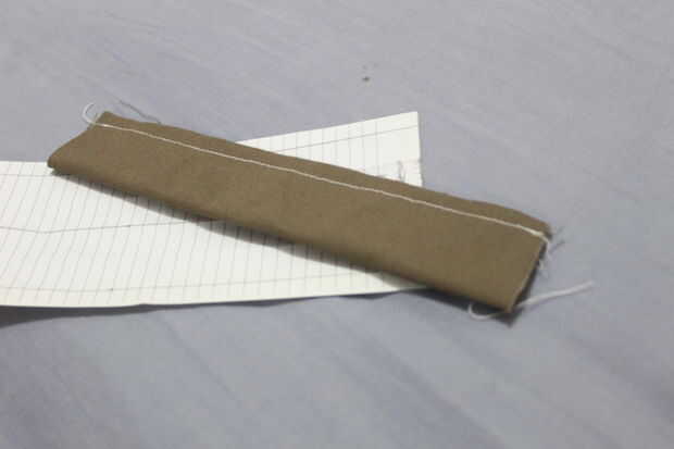 - Doblar la tira por la mitad a lo largo del lado largo.