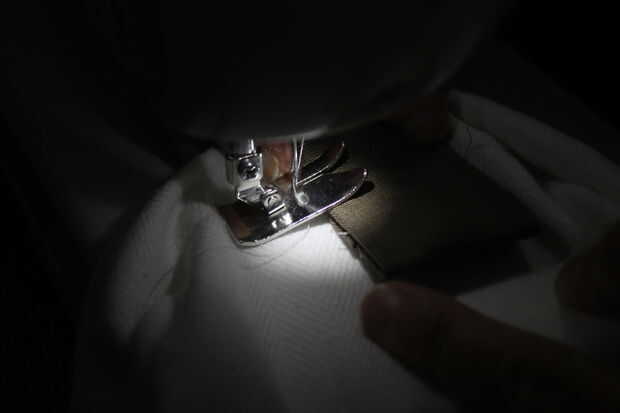 - Coser el lazo en el bolso con el emblemático cuadrado cruzado.