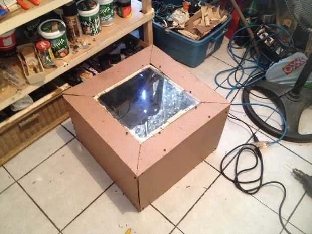 Cuatro pedazos de tablero de fibra de 1/8 fue utilizado para sellar la parte superior entre el horno y aislamiento de la caja.