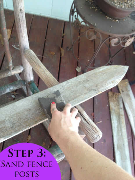 Ahora que querrá sus postes de la cerca de la arena, teniendo especial cuidado de hacer el "lado estar" especialmente suave.  No quiero su silla splintery o enganchar en la ropa.  He utilizado postes que llegan a un punto de mi silla.  No he tenido ningún problema con ellos es incómodo.  Sin embargo, esto puede no funcionar tan bien para la forma de la silla particular.  Si esta silla va a ser alrededor de niños pequeños, puede que desee elegir postes o tablas que son contundentes.
