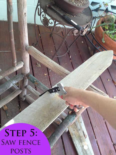 Utilizando los brazos de la silla como un caballo de sierra, cortar sus postes de la cerca.  Reducir poco a poco para el último o dos pulgadas y soporte el área cerca del corte para evitar grietas o astillas.