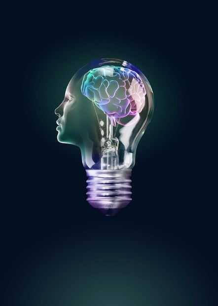 Variación de color adicionales a la capa de 'bombilla' debe añadirse con misma técnica que con el cerebro y la cara. Crear una nueva capa para utilizar como una máscara de recorte de Color, modo de fusión. Para colorear, utilizar amarillo/naranja, azul y rosa - aplicado con un cepillo suave.