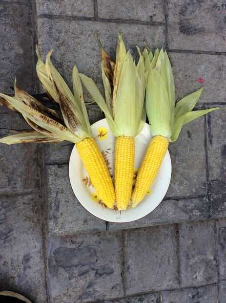 Cuando el maíz empieza a silbido y silbido se hace. Aproximadamente 10-15 minutos. Tire la cáscara trasera y dejar atado le pueden utilizar como manija. Condimentar a gusto.