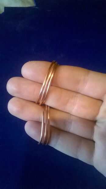Este es el resultado final; dos anillos de cobre agradables que van alrededor de los dos juegos de dedos, así que cuando se separan luego se propagan al igual que un Vulcano. Le deseo paz y prosperidad.