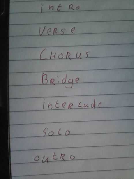 Puente: un puente de una diversa clase de verso, es sobre todo cerca de un solo, la causa puede hacer la música justo en el solo.