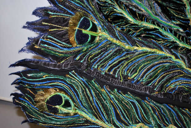 Si quieres seguir el proyecto de principio a fin, revisa mi instructables otros. Hacer la pluma de pavo real "ojo" fue parte 1. Forman la "columna vertebral" y "tórax" de la pluma en la parte 2, descubierta escondido oro guarnecidos parte 3, cosido abajo del terciopelo con el oro en el 4, en algunos azul en el 5 º, totalmente frondas la pluma en el 6to, acolchado los ojos en la parte 7 y acolchado de las hojas en la parte 8. En la parte 9 me había estabilizado acolchar y di el ventilador un terciopelo precioso forro. Esta es la parte 10. ¡ Bienvenido!
