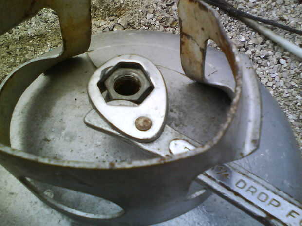 Tuvieron que tirar de volante en un Rumbler de AMC de 1958, que requiere el extractor de volante de J-5290. No es fácil de encontrar, así que tuve que hacer uno. Encontró que las roscas de un tanque de propano son exactamente lo que necesitaba para l