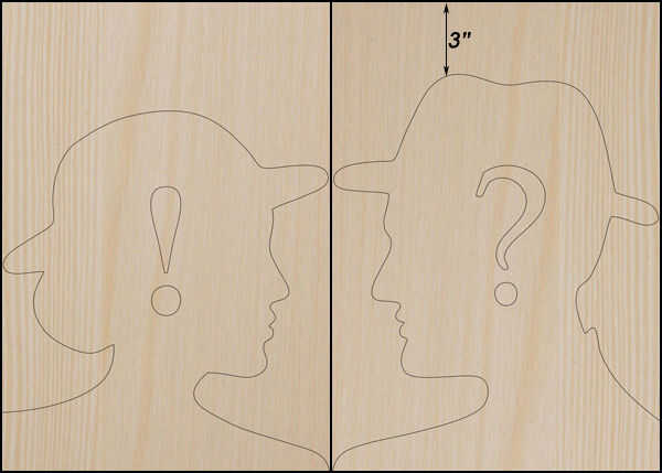 Hicimos nuestro panel hombre 69" largo y mujer 68" de largo. Por supuesto, puede variar tuyo a tu gusto. Si desea nuestro, seguir estas medidas. Con la plantilla, posición de hombre corte plantilla 3" por debajo del tope de la tabla de pino, traza y marca en la placa. Mujer de posición recorte plantilla de 4-1/4" de la parte superior del panel. Sólo asegúrese de que el borde de ambos de sus sombreros alinear de tal manera de buscan el uno al otro.