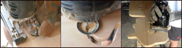 Con jigsaw, empiece a cortar un área de trazado. Para los recortes del centro, perfore un agujero primero por lo que se puede obtener la hoja de rompecabezas para el corte. No te preocupes si los cortes no son que limpia - a acabado y alise los bordes más adelante. Para secciones más detalladas, deberás utilizar un Rotozip o una herramienta giratoria Dremel. Luego use una lijadora de forma y acabado de los bordes. Tablas de pino son bastante suaves, por lo que no debería ser difícil obtener un borde limpio, incluso con lijado sólo manual.