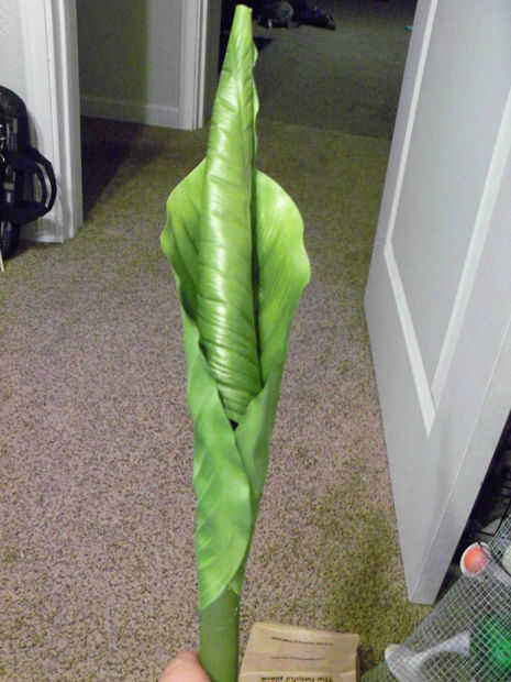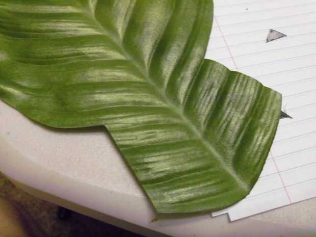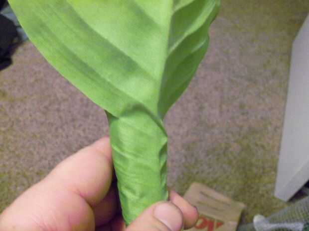 Ahora en la parte más desperdiciador de tiempo. Colocar hojas de forma natural. Por suerte la planta esto se modela después crece principalmente en un plano así que todo lo que tienes que hacer es girar de la "izquierda" a "derecha" (es un tubo vertical a la izquierda y derecha es relativo) de la licencia tendrá que ser preparado antes de ser añadido a la caja fuerte de la planta. A preparación para usar un par de sisccors para cortar en forma de barrido hacia el centro. Deje aproximadamente 1/4 a 1/2 pulgadas desde el centro de la hoja. Luego pellizca apagado cerca de la mitad de la aleta para que tengas menos ocuparse cuando envuelve la hoja alrededor de la tubería.